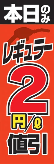 のぼり屋さんドットコムTOP > 既製デザインのぼり旗 > 車 > ガソリンスタンド > レギュラー2円/l値引