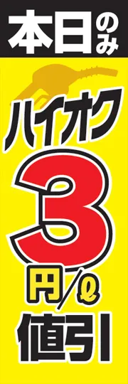 のぼり屋さんドットコムTOP > 既製デザインのぼり旗 > 車 > ガソリンスタンド > ハイオク3円/l値引