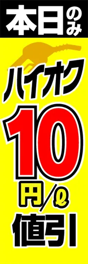 のぼり屋さんドットコムTOP > 既製デザインのぼり旗 > 車 > ガソリンスタンド > ハイオク10円/l値引