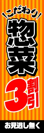 のぼり屋さんドットコムTOP > 既製デザインのぼり旗 > イベント > その他のイベント > 惣菜3割引