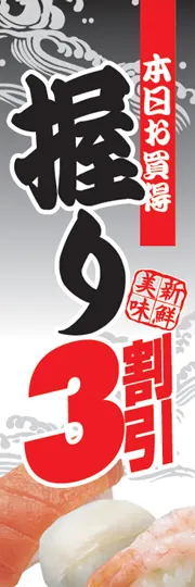 のぼり屋さんドットコムTOP > 既製デザインのぼり旗 > 飲食店・食品 > 寿司 > その他の寿司 > 握り3割引