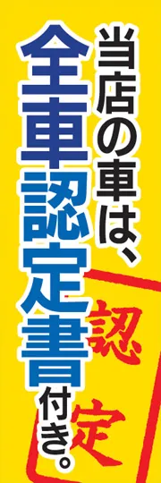 のぼり屋さんドットコムTOP > 既製デザインのぼり旗 > 車 > 新車・中古車 > 当店の車は、全車認定書付き。