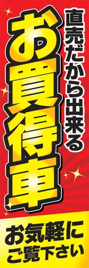 のぼり屋さんドットコムTOP > 既製デザインのぼり旗 > 車 > 新車・中古車 > 直売だから出来るお買得車