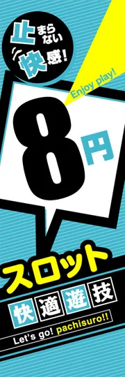のぼり屋さんドットコムTOP > 既製デザインのぼり旗 > アミューズメント > スロット > 8円スロット快適遊技
