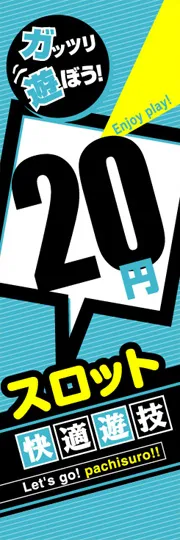 のぼり屋さんドットコムTOP > 既製デザインのぼり旗 > アミューズメント > スロット > 20円スロット快適遊技