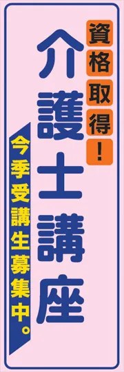 のぼり屋さんドットコムTOP > 既製デザインのぼり旗 > 学校・塾・教室 > 教室・習い事 > 介護士講座