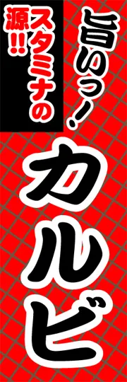 のぼり屋さんドットコムTOP > 既製デザインのぼり旗 > 飲食店・食品 > 肉 > 焼肉・串焼き > カルビ