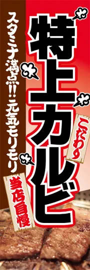 のぼり屋さんドットコムTOP > 既製デザインのぼり旗 > 飲食店・食品 > 肉 > 焼肉・串焼き > 特上カルビ