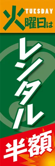 のぼり屋さんドットコムTOP > 既製デザインのぼり旗 > レンタルショップ > 割引・キャンペーン > 火曜日はレンタル半額