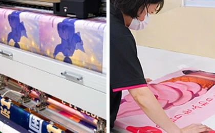 スポーツの試合やコンサートなどでの応援、イベント・行事の掲示などに使われる横断幕。横長のレイアウトであれば目につきやすく、また設置や持ち運びも容易なため重宝されるアイテムです。
